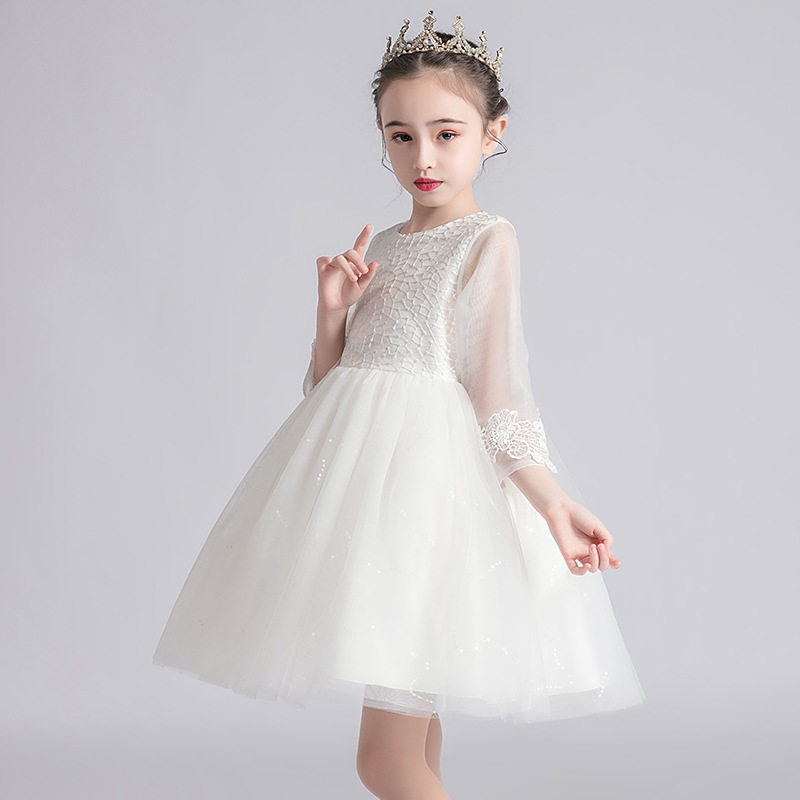 女童蓬蓬纱连衣裙春秋儿童花童婚纱裙白色女孩公主裙子表演出礼服热门设计联盟服务商