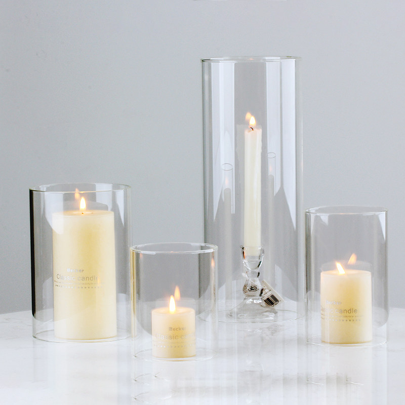 玻璃烛台摆件灯罩无底直筒防风蜡烛罩北欧简约浪漫餐桌装饰道具热门设计联盟服务商