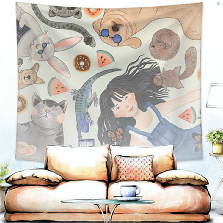 ins挂布改造卡通宿舍女孩装饰背景墙挂网幕布背景墙布背景红漫画热门设计联盟服务商