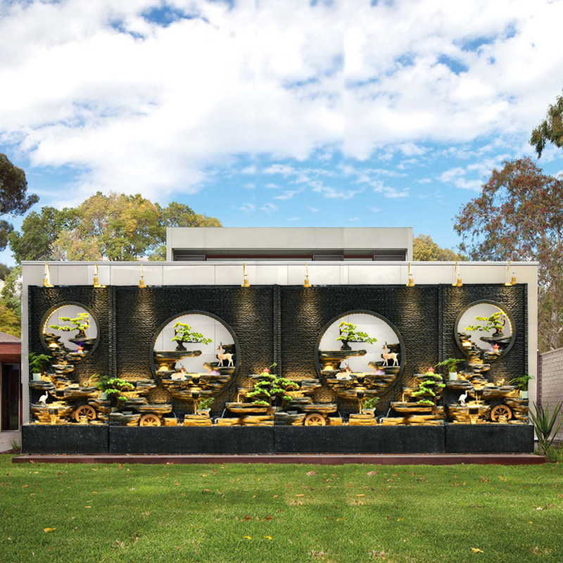 水幕墙流水屏风隔断玄关酒店公司假山喷泉景观鱼池摆件庭院户外热门设计联盟服务商