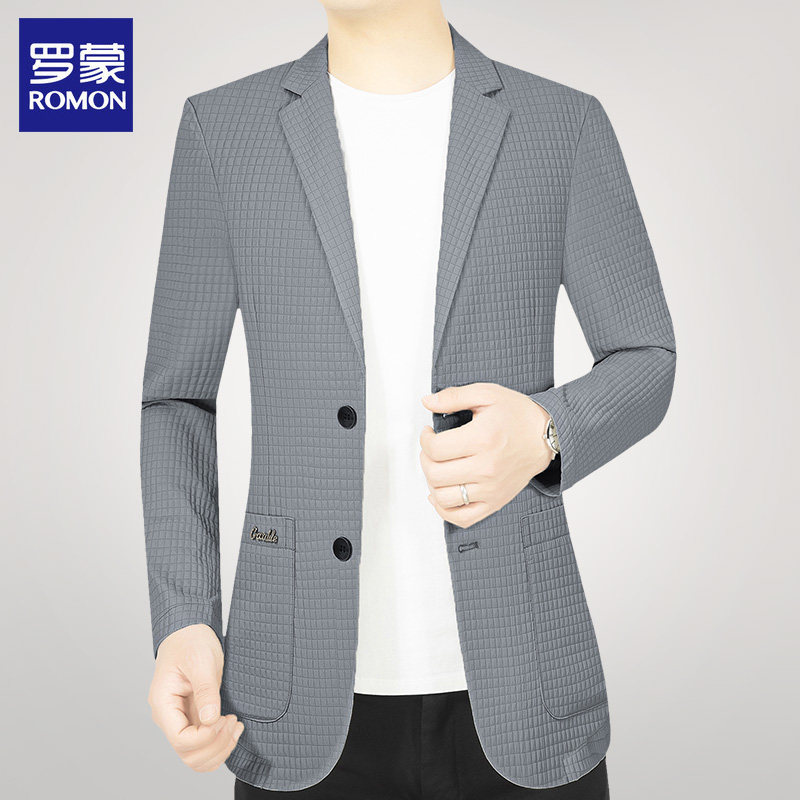 罗蒙西装外套男2023新夏季薄款防晒冰丝中年爸爸单西服男休闲上衣热门设计联盟服务商
