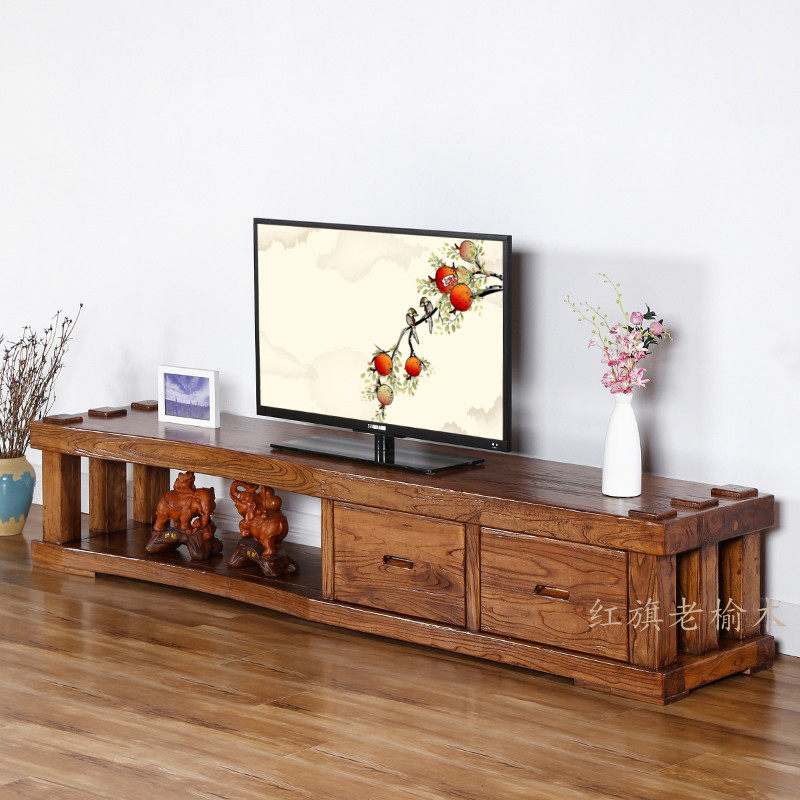 茶几组合红旗全实木电视视听影视柜老榆木家具简约现代客厅小户型热门设计联盟服务商