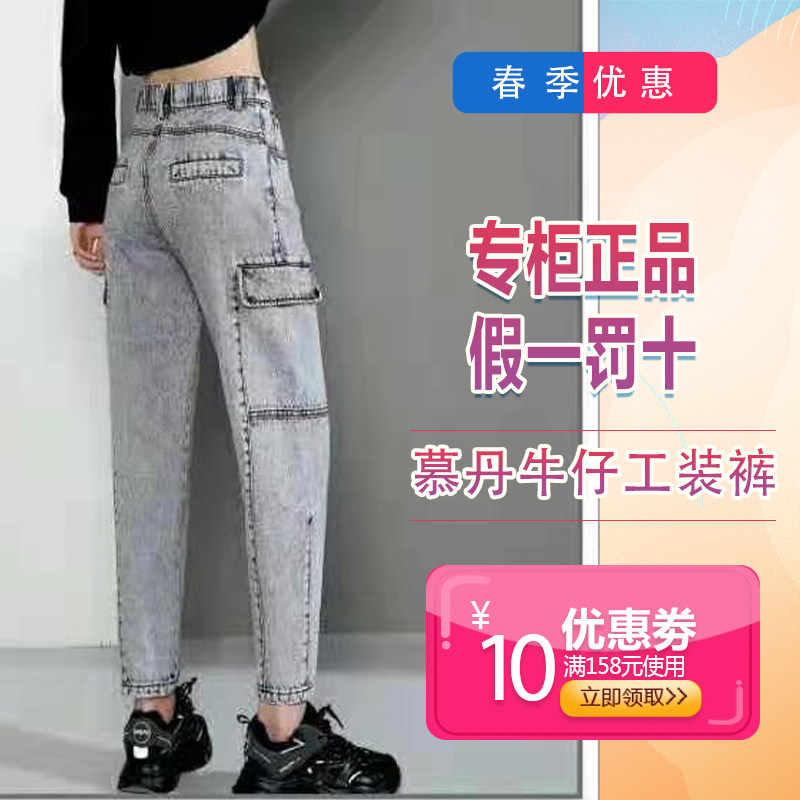 慕丹牛仔裤女2021年新款36005力高腰裤显高显瘦哈伦工装裤热门设计联盟服务商